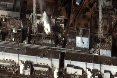 Satellite image taken March 16, 2011, of damaged reactors at Japan’s Fukushima Daiichi nuclear power plant. (DigitalGlobe photo)